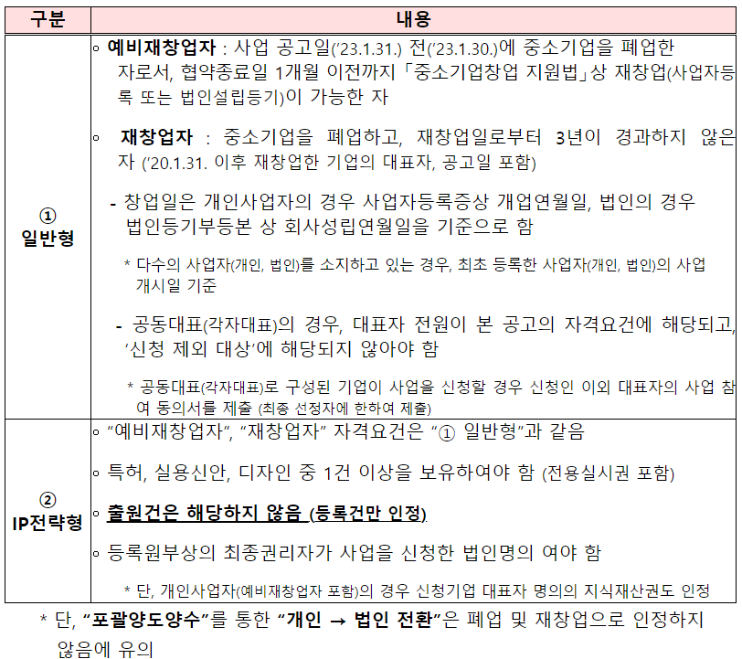 | IP전략형 | IP(지식재산)를 보유한 예비 또는 재창업 3년 이하 | 15명 내외 |